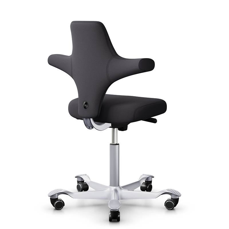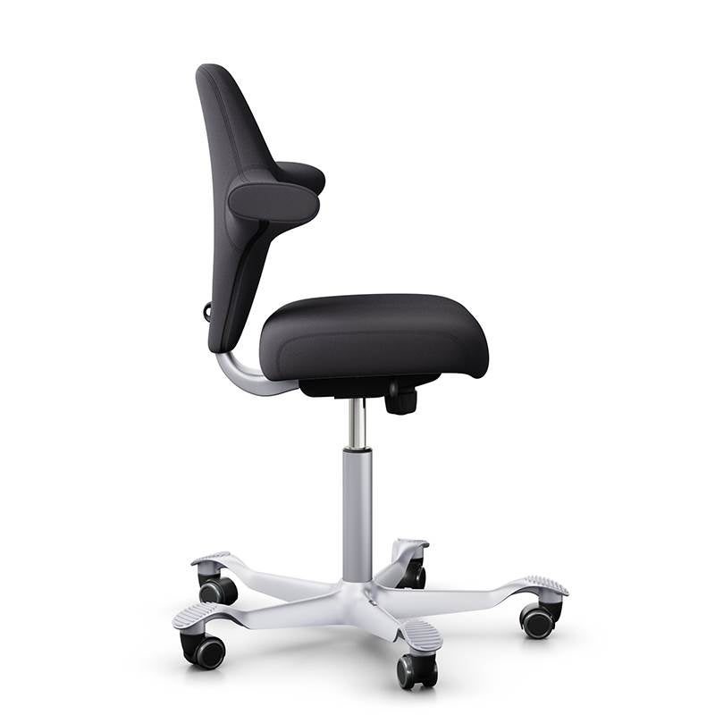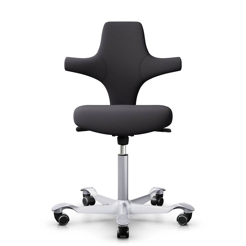 Capisco 8126 är en klassisk bästsäljare. Modell 8126 har en kortare, avrundad sits till skillnad mot sadelvarienterna. Det ger dig större möjligheter till fler sittställningar. Det funkar lika bra att sitta med benen i kors, som att använda den som stående stöd i upphissat läge. Capisco tillåter ett dynamiskt sittande med balanserat stöd oavsett sitthöjd och position. Stativet har fem armar (Ø730 mm) med lättrullande hjul vilket ger en stabil sittkänsla. Lämplig för bord med arbetshöjd 720 mm och däröver.