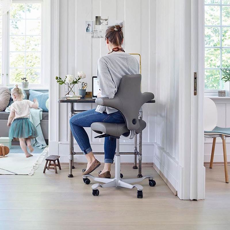 Capisco 8126 är en klassisk bästsäljare. Modell 8126 har en kortare, avrundad sits till skillnad mot sadelvarienterna. Det ger dig större möjligheter till fler sittställningar. Det funkar lika bra att sitta med benen i kors, som att använda den som stående stöd i upphissat läge. Capisco tillåter ett dynamiskt sittande med balanserat stöd oavsett sitthöjd och position. Stativet har fem armar (Ø730 mm) med lättrullande hjul vilket ger en stabil sittkänsla. Lämplig för bord med arbetshöjd 720 mm och däröver.