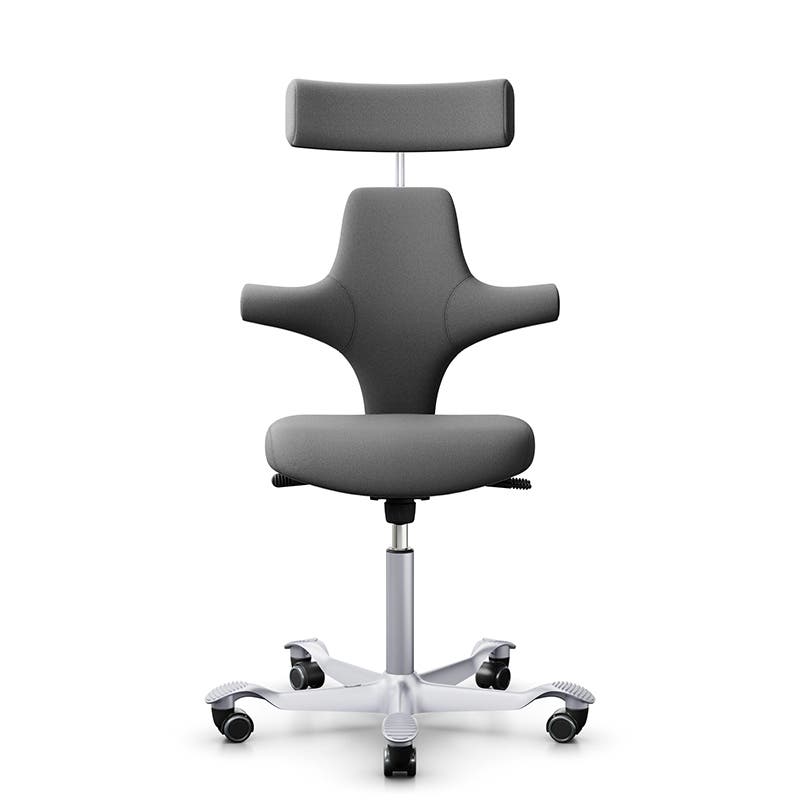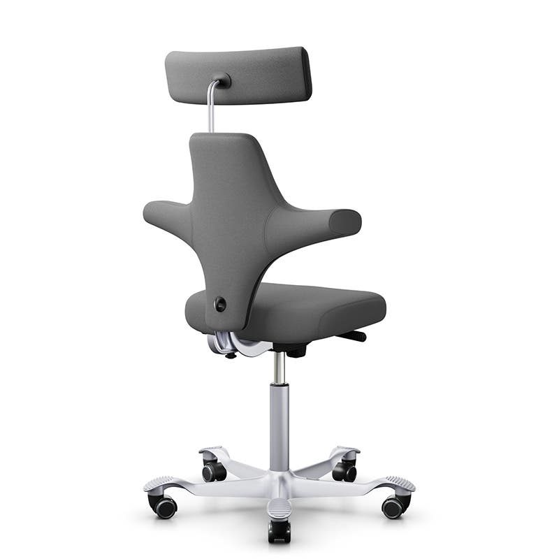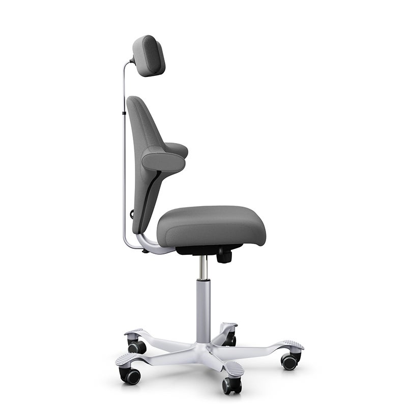 Kontorsstol Capisco Classic 8127, traditionell sits med ryggstöd och nackstöd, Grå Tyg Xtreme, sitthöjd 408 - 540 mm, hjul
