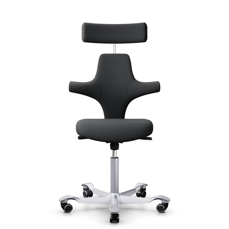 Kontorsstol Capisco Classic 8127, traditionell sits med ryggstöd och nackstöd, Mörkgrå Tyg Xtreme, sitthöjd 408 - 540 mm, hjul