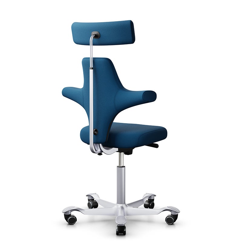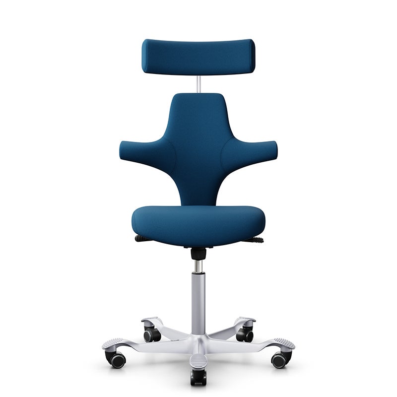 Capisco 8127 är en klassisk bästsäljare. Modell 8127 är utrustad med nackstöd och har en kortare, avrundad sits till skillnad mot sadelvarienterna. Det ger dig större möjligheter till fler sittställningar. Det funkar lika bra att sitta med benen i kors, som att använda den som stående stöd i upphissat läge. Capisco tillåter ett dynamiskt sittande med balanserat stöd oavsett sitthöjd och position. Stativet har fem armar (Ø730 mm) med lättrullande hjul vilket ger en stabil sittkänsla. Lämplig för bord med arbetshöjd 720 mm och däröver.