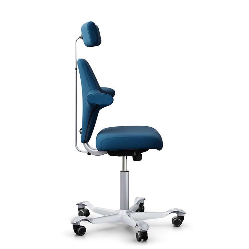 Kontorsstol Capisco Classic 8127, traditionell sits med ryggstöd och nackstöd, Marinblå Tyg Xtreme, sitthöjd 408 - 540 mm, hjul