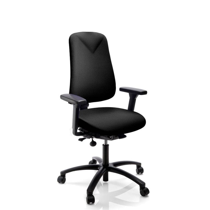 Kontorsstol Höganäs +382 uppfyller alla ergonomiska krav man kan sätta på en kontorsstol. I grunden är den samma stol som +381 fast med skillnaden att den är helt klädd med tyg och saknar således plastkanten runt ryggbricka och sits som +381:an har.