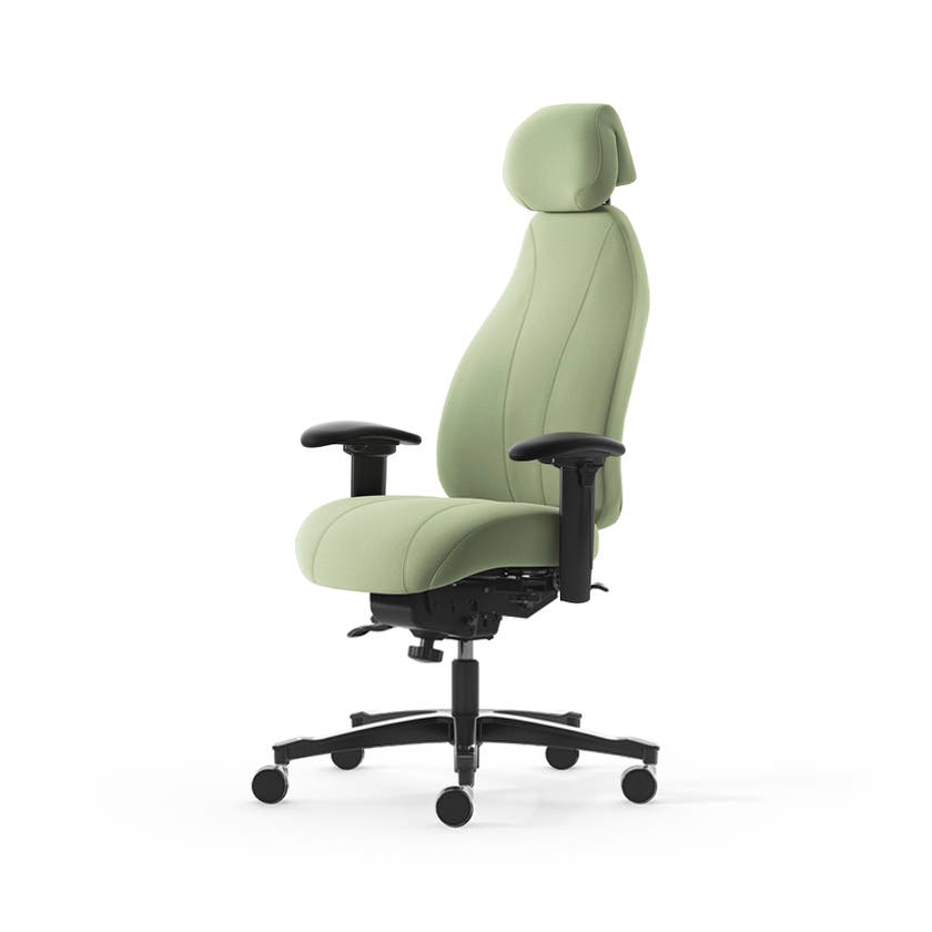 Kontorsstol Malmstolen 4000 med hög rygg, Dux-sits, nackstöd i tyg, armstöd Corona, hjul hårda golv, Tyg Capture 6501 Grön