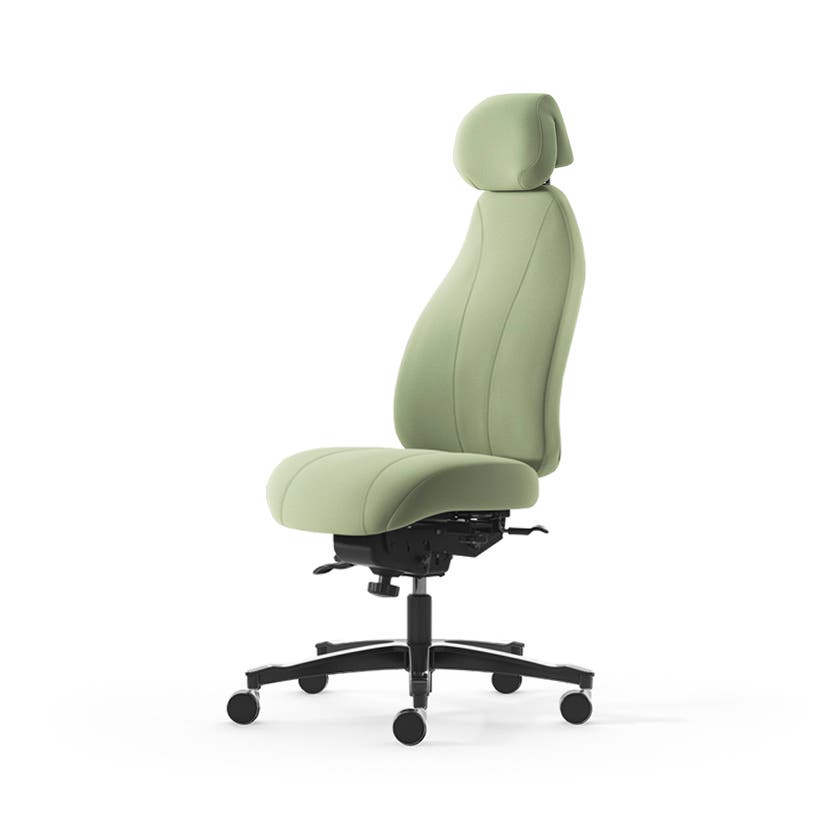 Kontorsstol Malmstolen 4000 med hög rygg, Dux-sits, nackstöd i tyg, hjul för hårda golv, Tyg Capture 6501 Grön