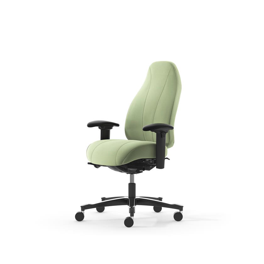 Kontorsstol Malmstolen 7000 med hög rygg, Dux-sits, armstöd Corona, hjul för hårda golv, Tyg Capture 6501 Grön