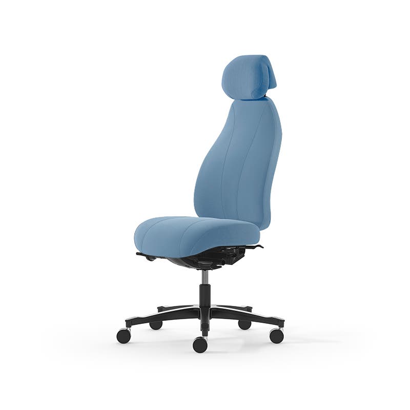 Kontorsstol Malmstolen 7000 med hög rygg, Dux-sits, nackstöd i tyg, hjul för hårda golv, Tyg Capture 4901 Blå