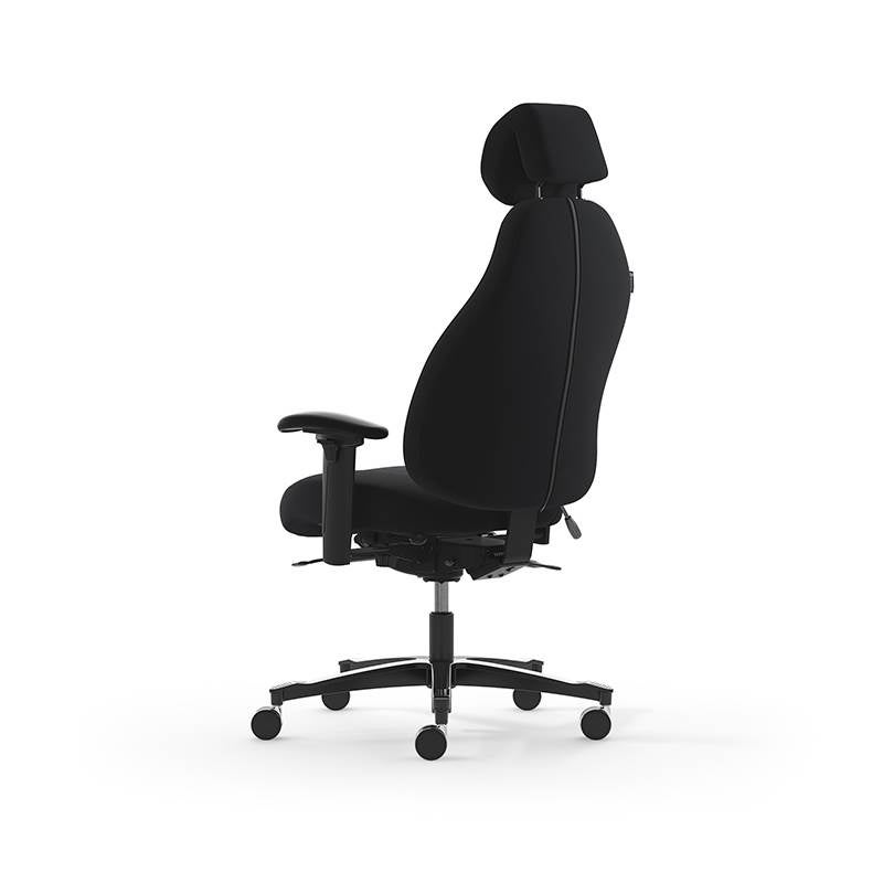 Kontorsstol Malmstolen 7000 wide hög rygg, Dux-sits, nackstöd tyg, armstöd Corona, hjul hårda golv, Tyg Capture 5701 Svart