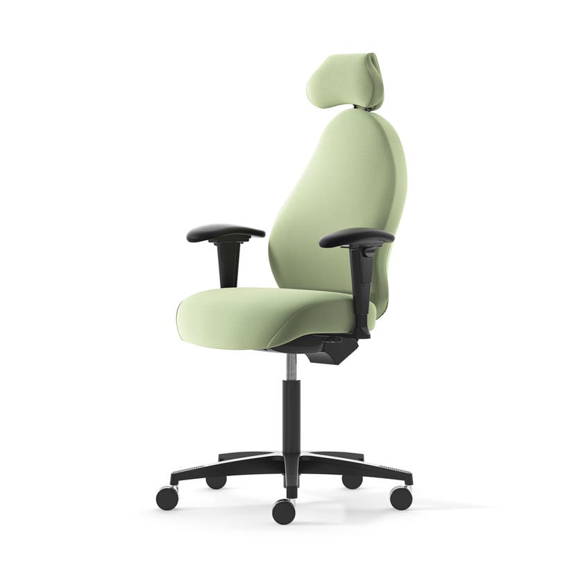 Kontorsstol Malmstolen R3H med hög rygg, Dux-sits, nackstöd i tyg, armstöd Corona, hjul hårda golv, Tyg Capture 6501 Grön