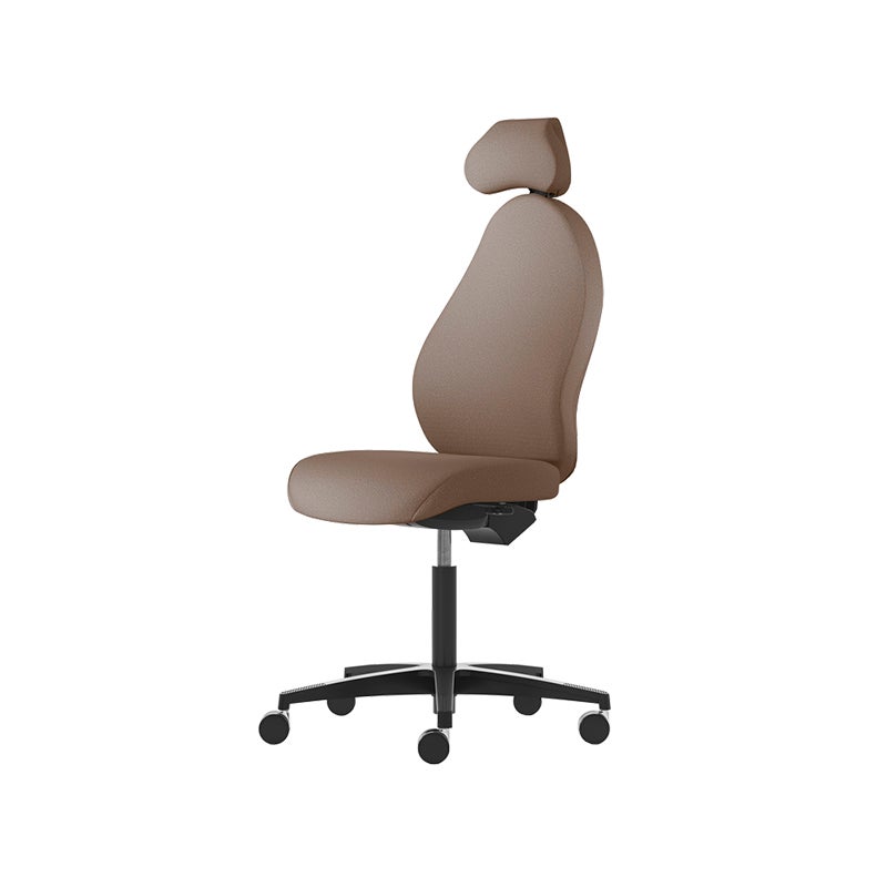 Kontorsstol Malmstolen R3H med hög rygg, Dux-sits, nackstöd i tyg, hjul för hårda golv, Tyg Capture 4803 Brun