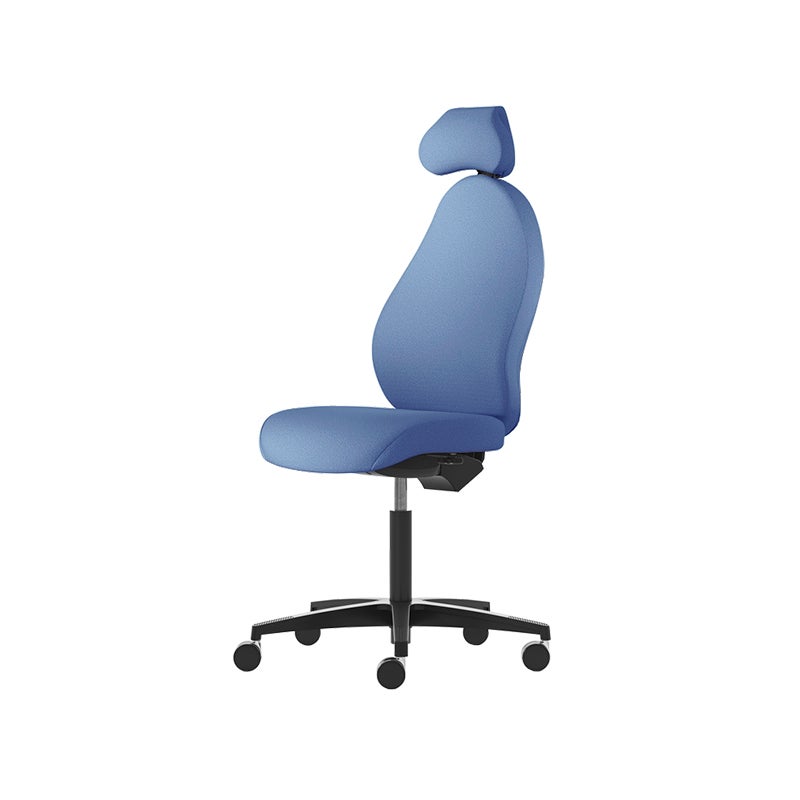 Kontorsstol Malmstolen R3H med hög rygg, Dux-sits, nackstöd i tyg, hjul för hårda golv, Tyg Capture 4901 Blå