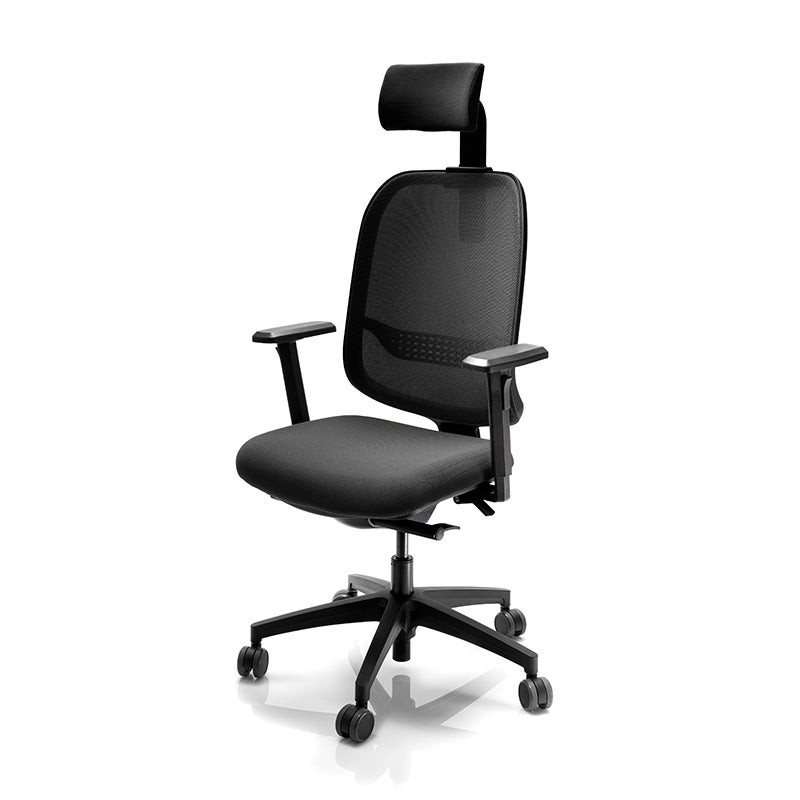 Kontorsstol Mesh, inkl armstöd & Nackstöd, sitthöjd 45-57 cm, Sits i tyg