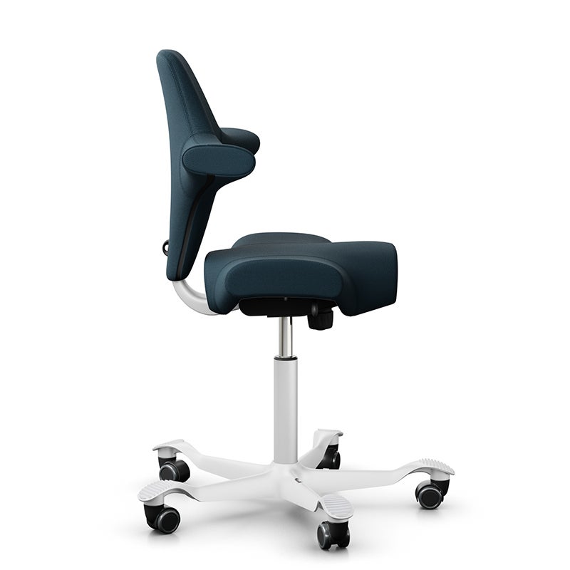 Kontorsstol Capisco Classic 8106, sadelsits med ryggstöd, Mörkblå Tyg Select, sitthöjd 408 - 540 mm, hjul