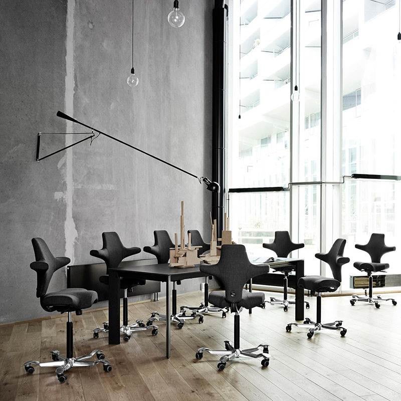 Capisco 8106 är en klassisk bästsäljare. Modellen har sina rötter så långt tillbaka som 1974, har under årens gång hela tiden uppdaterats för att främja funktionen och optimera tillverkningsprocessen. Sadelstolen har en ikonisk design med grundtanken att erbjuda en sitthållning likt den på en hästsadel. Stolen är justerbar för att kunna användas i både låg och hög arbetsposition, hela vägen upp till stående position. Capisco tillåter ett dynamiskt sittande med balanserat stöd oavsett sitthöjd och position. Stativet har fem armar (Ø730 mm) med lättrullande hjul vilket ger en stabil sittkänsla. Lämplig för bord med arbetshöjd 720 mm och däröver.