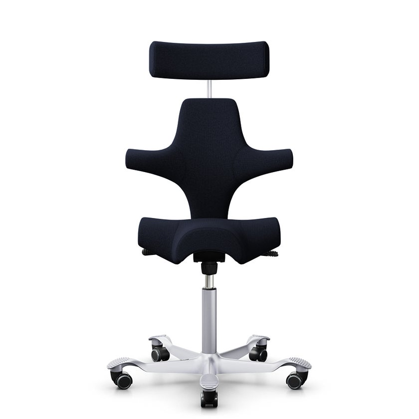 Capisco 8107 med rygg och nackstöd är en klassisk bästsäljare. Modellen har sina rötter så långt tillbaka som 1974, har under årens gång hela tiden uppdaterats för att främja funktionen och optimera tillverkningsprocessen. Sadelstolen har en ikonisk design med grundtanken att erbjuda en sitthållning likt den på en hästsadel. Stolen är justerbar för att kunna användas i både låg och hög arbetsposition, hela vägen upp till stående position. Capisco tillåter ett dynamiskt sittande med balanserat stöd oavsett sitthöjd och position. Stativet har fem armar (Ø730 mm) med lättrullande hjul vilket ger en stabil sittkänsla. Lämplig för bord med arbetshöjd 720 mm och däröver.