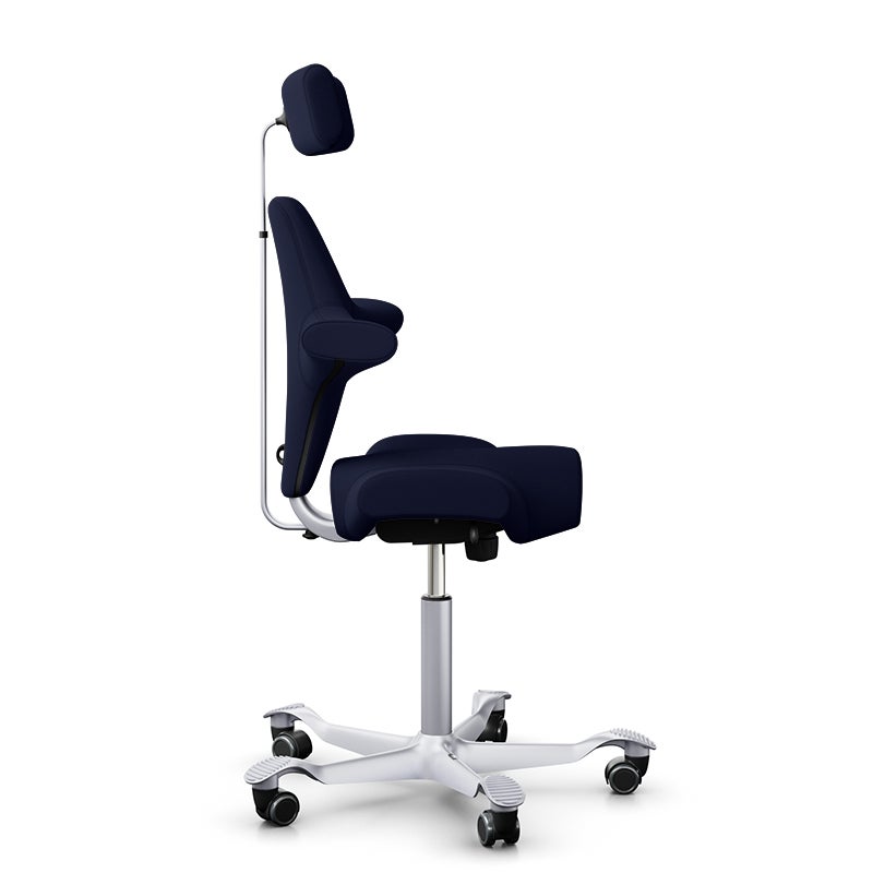 Kontorsstol Capisco Classic 8107, sadelsits med ryggstöd och nackstöd, Marinblå Tyg Xtreme, sitthöjd 408 - 540 mm, hjul