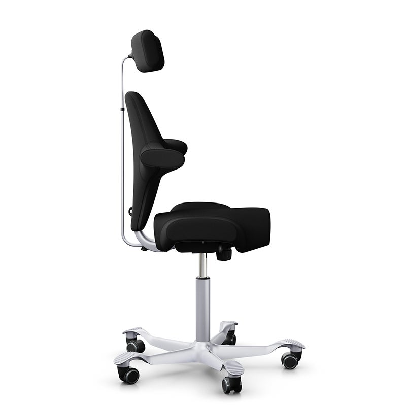 Kontorsstol Capisco Classic 8107, sadelsits med ryggstöd och nackstöd, Svart tyg Xtreme, sitthöjd 408 - 540 mm, hjul
