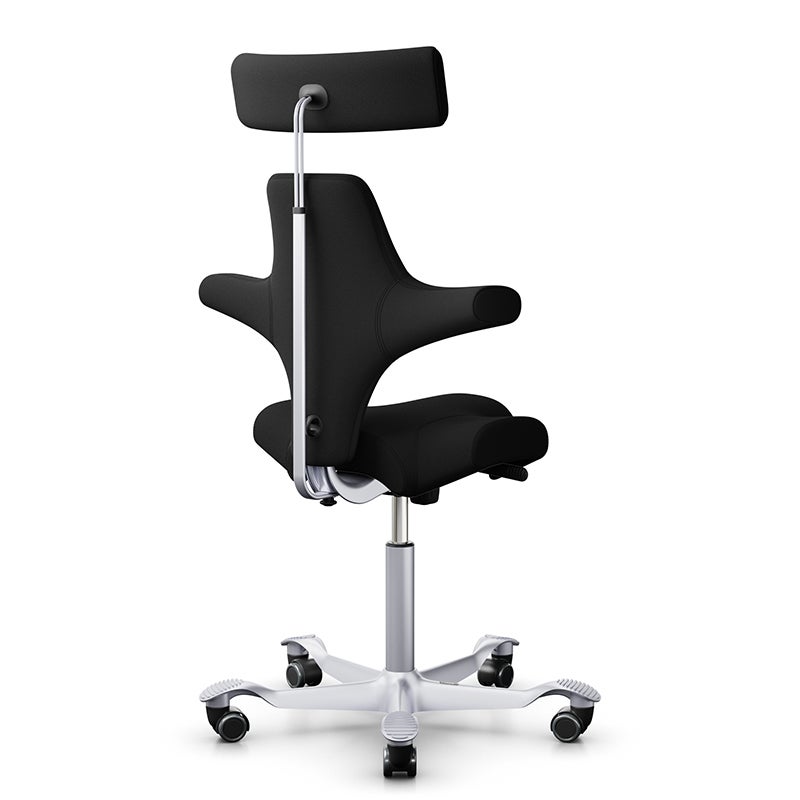 Capisco 8107 med rygg och nackstöd är en klassisk bästsäljare. Modellen har sina rötter så långt tillbaka som 1974, har under årens gång hela tiden uppdaterats för att främja funktionen och optimera tillverkningsprocessen. Sadelstolen har en ikonisk design med grundtanken att erbjuda en sitthållning likt den på en hästsadel. Stolen är justerbar för att kunna användas i både låg och hög arbetsposition, hela vägen upp till stående position. Capisco tillåter ett dynamiskt sittande med balanserat stöd oavsett sitthöjd och position. Stativet har fem armar (Ø730 mm) med lättrullande hjul vilket ger en stabil sittkänsla. Lämplig för bord med arbetshöjd 720 mm och däröver.