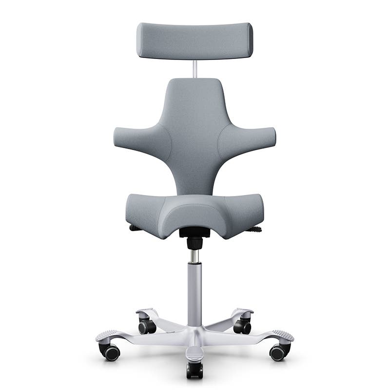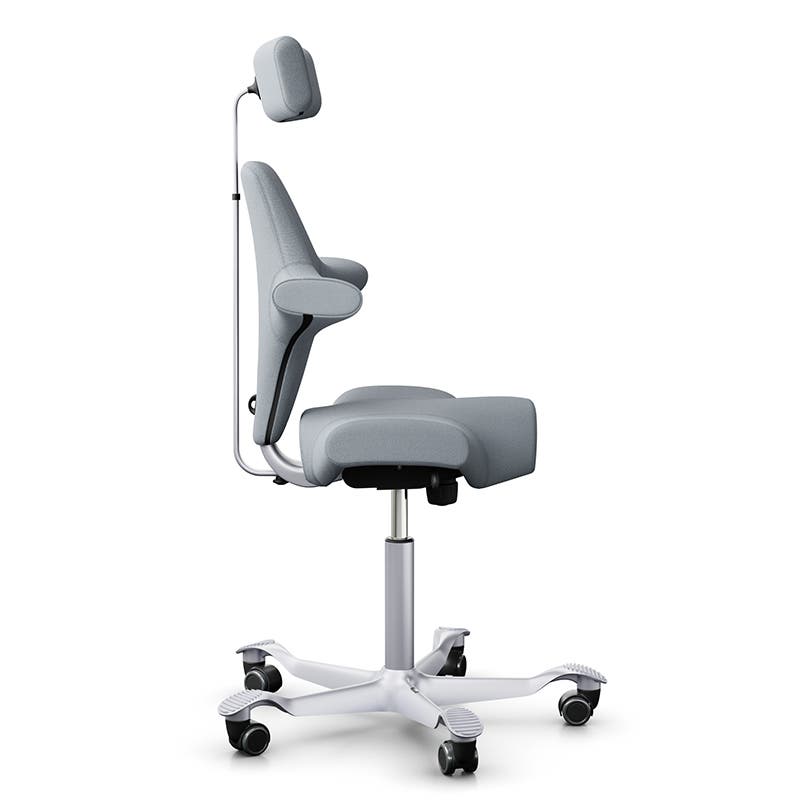 Kontorsstol Capisco Classic 8107, sadelsits med ryggstöd och nackstöd, Grå Tyg Select, sitthöjd 408 - 540 mm, hjul
