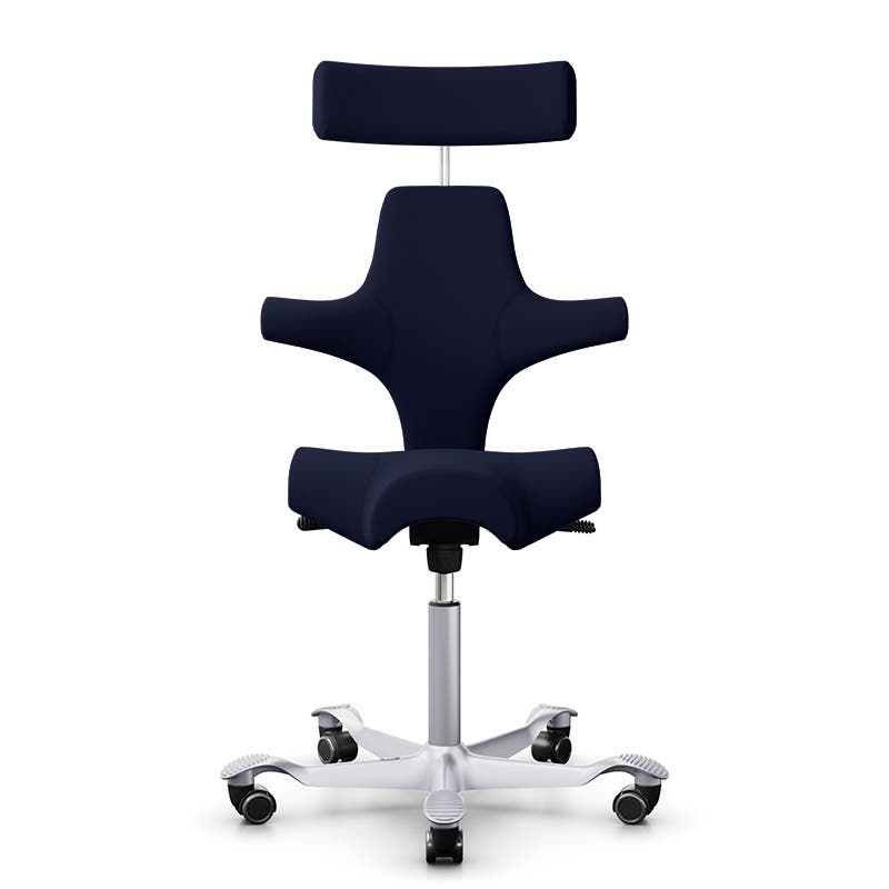 Kontorsstol Capisco Classic 8107, sadelsits med ryggstöd och nackstöd, Marinblå Tyg Xtreme, sitthöjd 470 - 655 mm, hjul