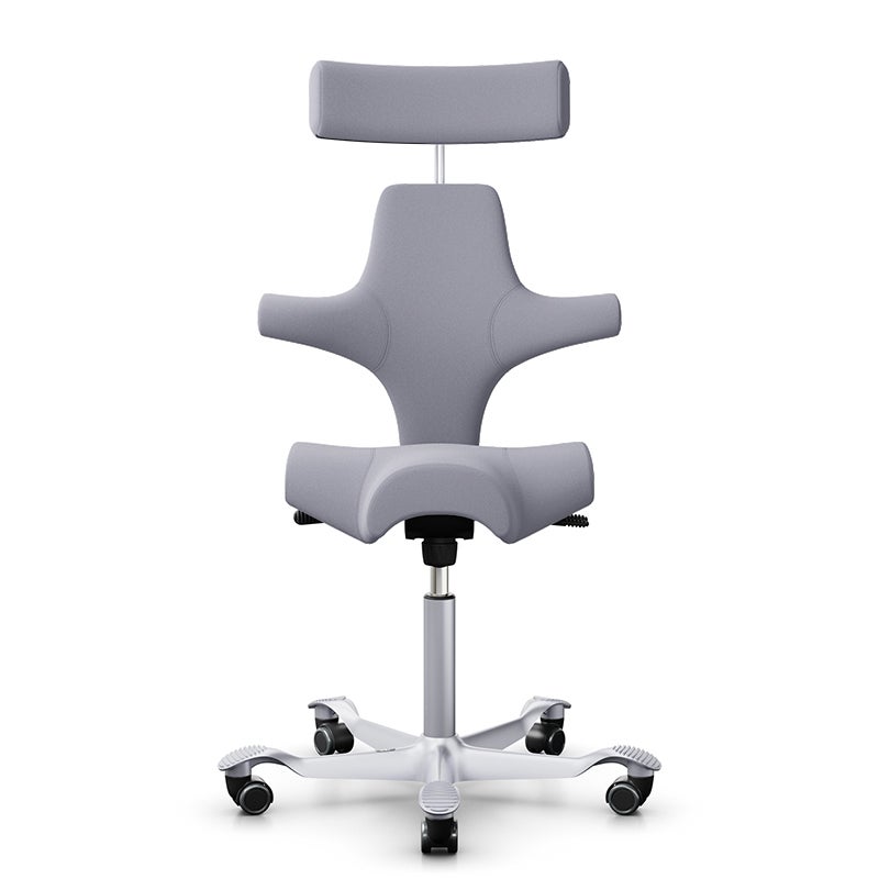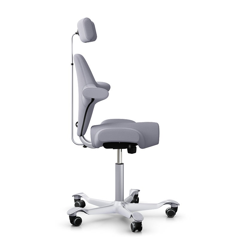 Kontorsstol Capisco Classic 8107, sadelsits med ryggstöd och nackstöd, Ljusgrå Tyg Xtreme, sitthöjd 408 - 540 mm, hjul