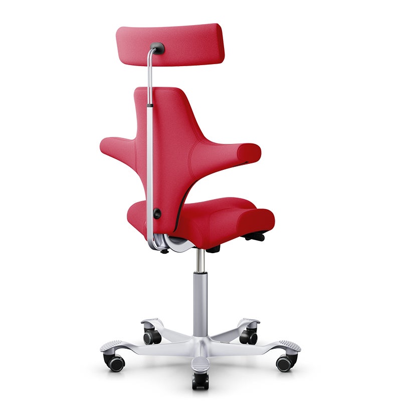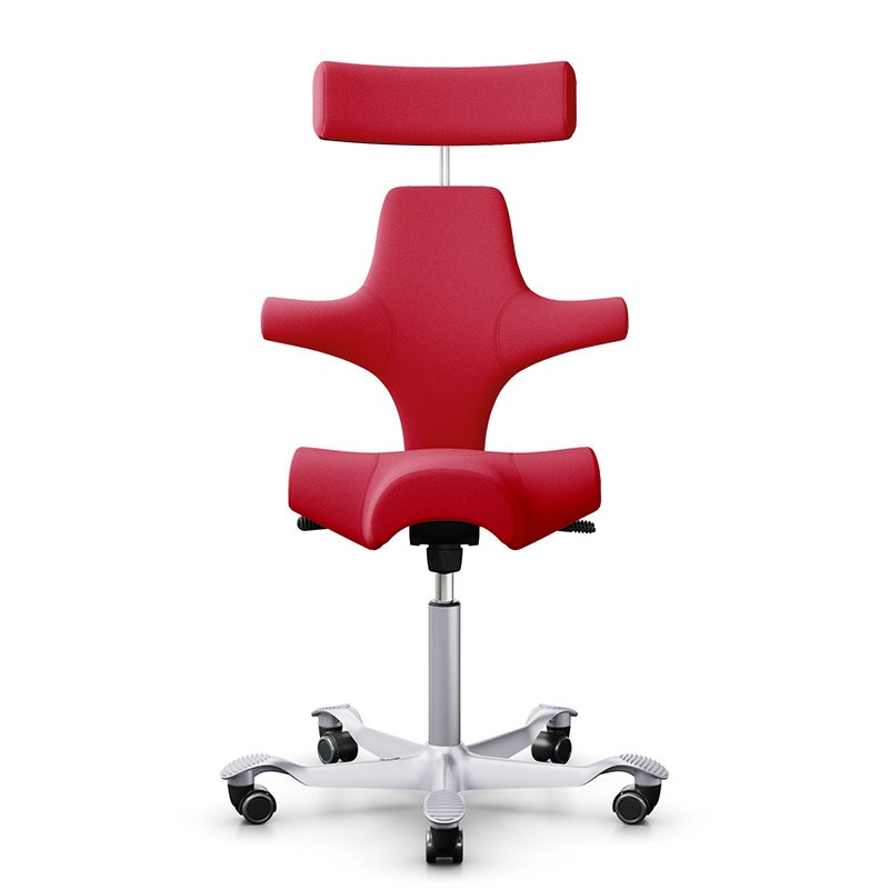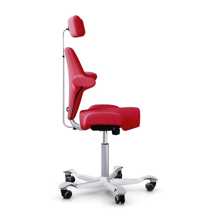 Kontorsstol Capisco Classic 8107, sadelsits med ryggstöd och nackstöd, Röd Tyg Xtreme, sitthöjd 408 - 540 mm, hjul