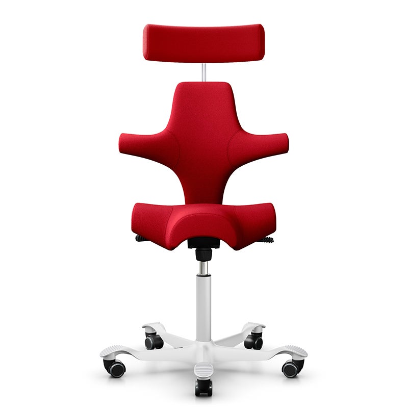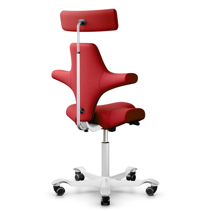 Capisco 8107 med rygg och nackstöd är en klassisk bästsäljare. Modellen har sina rötter så långt tillbaka som 1974, har under årens gång hela tiden uppdaterats för att främja funktionen och optimera tillverkningsprocessen. Sadelstolen har en ikonisk design med grundtanken att erbjuda en sitthållning likt den på en hästsadel. Stolen är justerbar för att kunna användas i både låg och hög arbetsposition, hela vägen upp till stående position. Capisco tillåter ett dynamiskt sittande med balanserat stöd oavsett sitthöjd och position. Stativet har fem armar (Ø730 mm) med lättrullande hjul vilket ger en stabil sittkänsla. Lämplig för bord med arbetshöjd 720 mm och däröver.