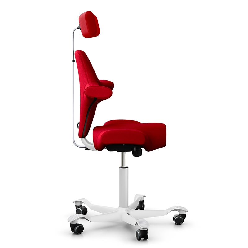 Kontorsstol Capisco Classic 8107, sadelsits med ryggstöd och nackstöd, Röd Tyg Select, sitthöjd 408 - 540 mm, hjul