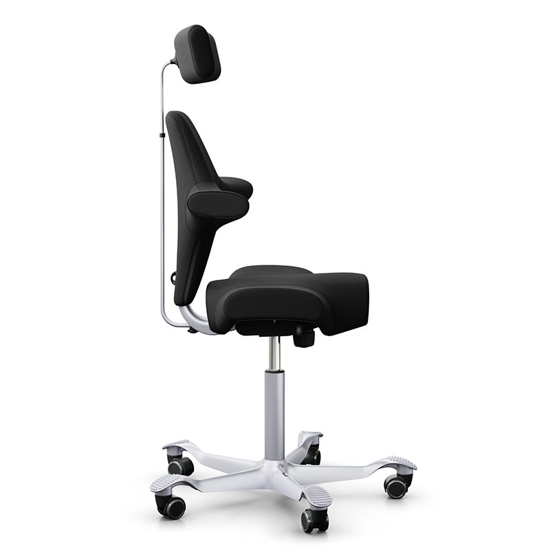 Kontorsstol Capisco Classic 8107, sadelsits med ryggstöd och nackstöd, Svart tyg Select, sitthöjd 408 - 540 mm, hjul