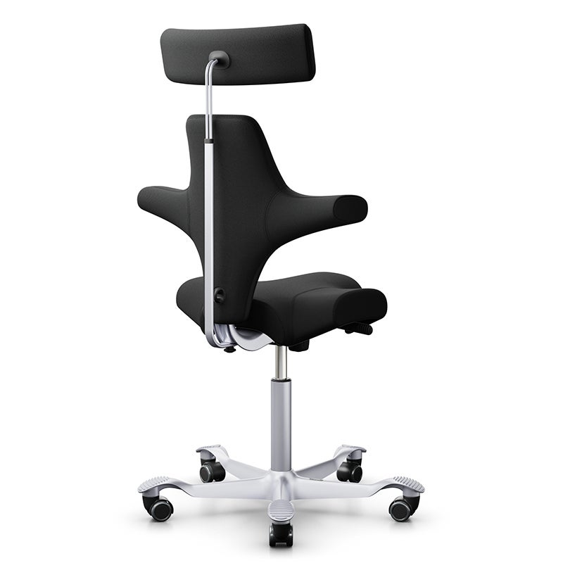 Capisco 8107 med rygg och nackstöd är en klassisk bästsäljare. Modellen har sina rötter så långt tillbaka som 1974, har under årens gång hela tiden uppdaterats för att främja funktionen och optimera tillverkningsprocessen. Sadelstolen har en ikonisk design med grundtanken att erbjuda en sitthållning likt den på en hästsadel. Stolen är justerbar för att kunna användas i både låg och hög arbetsposition, hela vägen upp till stående position. Capisco tillåter ett dynamiskt sittande med balanserat stöd oavsett sitthöjd och position. Stativet har fem armar (Ø730 mm) med lättrullande hjul vilket ger en stabil sittkänsla. Lämplig för bord med arbetshöjd 720 mm och däröver.