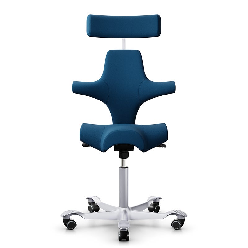 Kontorsstol Capisco Classic 8107, sadelsits med ryggstöd och nackstöd, Marinblå Tyg Select, sitthöjd 408 - 540 mm, hjul