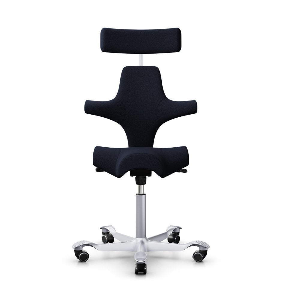 Kontorsstol Capisco Classic 8107, sadelsits med ryggstöd och nackstöd, Mörkblå Tyg Xtreme, sitthöjd 555 - 810 mm, hjul