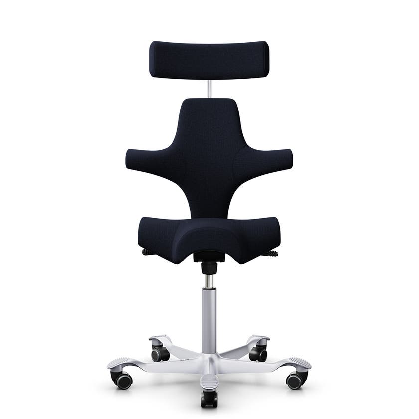 Capisco 8107 med rygg och nackstöd är en klassisk bästsäljare. Modellen har sina rötter så långt tillbaka som 1974, har under årens gång hela tiden uppdaterats för att främja funktionen och optimera tillverkningsprocessen. Sadelstolen har en ikonisk design med grundtanken att erbjuda en sitthållning likt den på en hästsadel. Stolen är justerbar för att kunna användas i både låg och hög arbetsposition, hela vägen upp till stående position. Capisco tillåter ett dynamiskt sittande med balanserat stöd oavsett sitthöjd och position. Stativet har fem armar (Ø730 mm) med lättrullande hjul vilket ger en stabil sittkänsla. Lämplig för bord med arbetshöjd 720 mm och däröver.