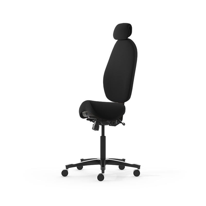 Sadelstol Malmstolen Active H5 med hög rygg, nackstöd i tyg, hjul för hårda golv, Tyg Capture 5701 Svart
