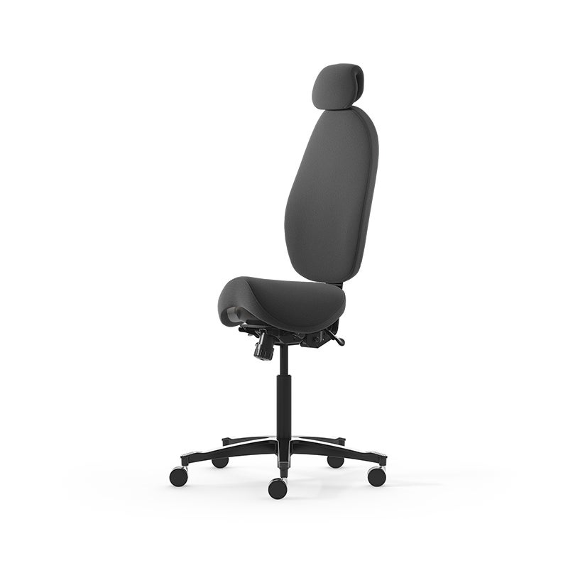 Sadelstol Malmstolen Active H5 med hög rygg, nackstöd i tyg, hjul för hårda golv, Tyg Capture 4601 Grå