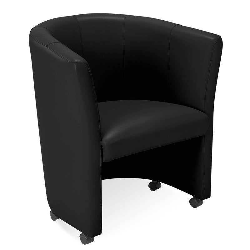Lättplacerad fåtölj i läcker design. Försedd med hjul. Passar utmärkt i entrén, pausrummet, väntrummet, kundhörnan etc.