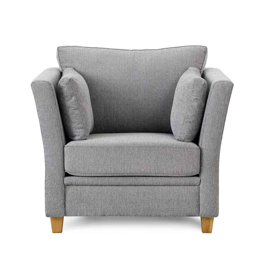 Stilren fåtölj/1-sitssoffa Dante i hög kvalitet och med mycket god sittkomfort. Klädd i slitstarkt tyg, välj mellan flera olika färger. Ben i oljad ek.
