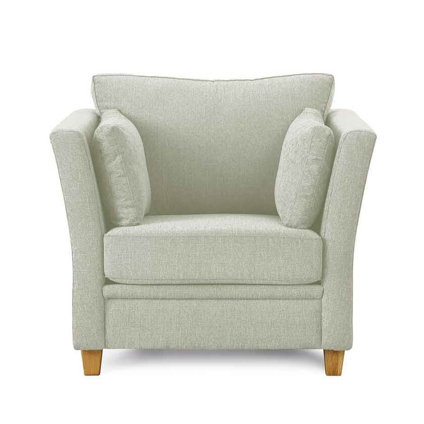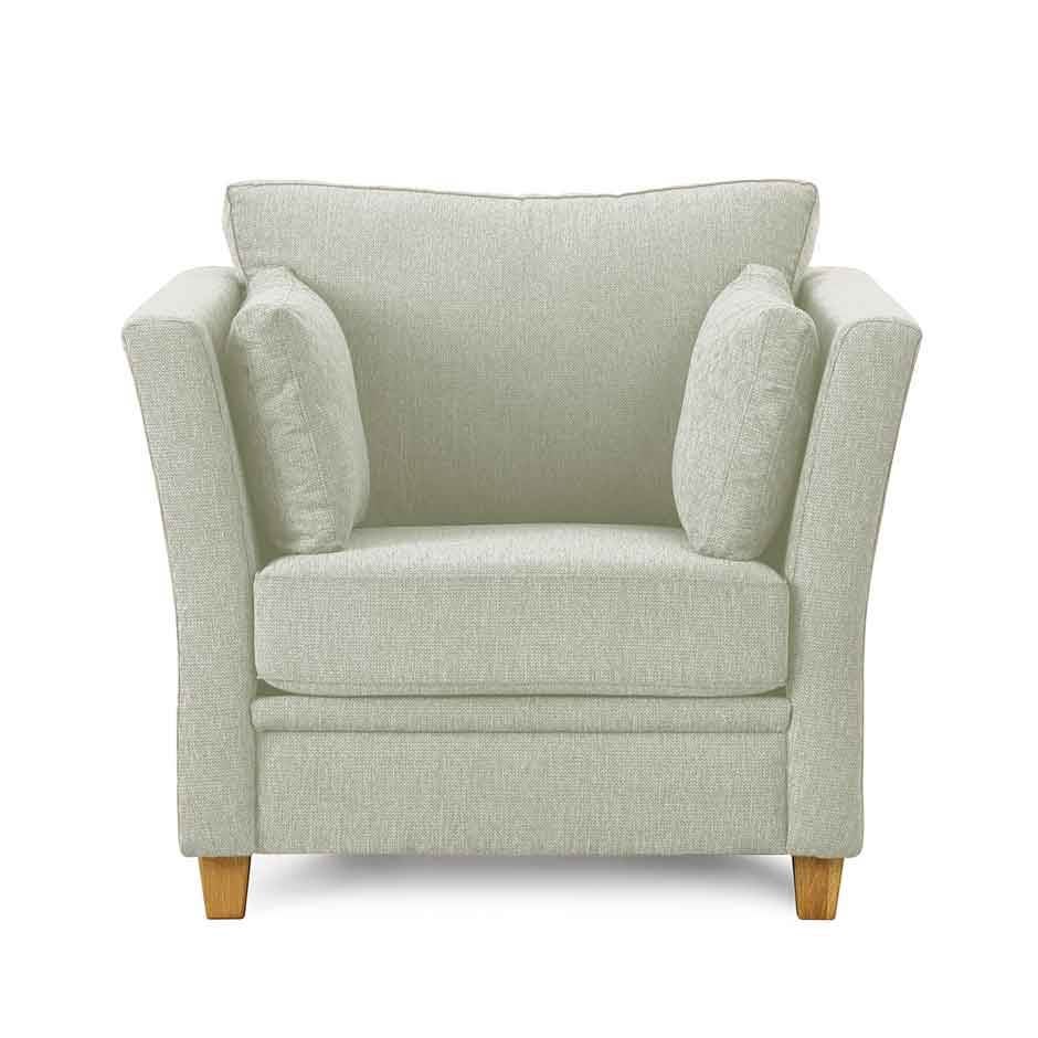 Stilren fåtölj/1-sitssoffa Dante i hög kvalitet och med mycket god sittkomfort. Klädd i slitstarkt tyg, välj mellan flera olika färger. Ben i oljad ek.