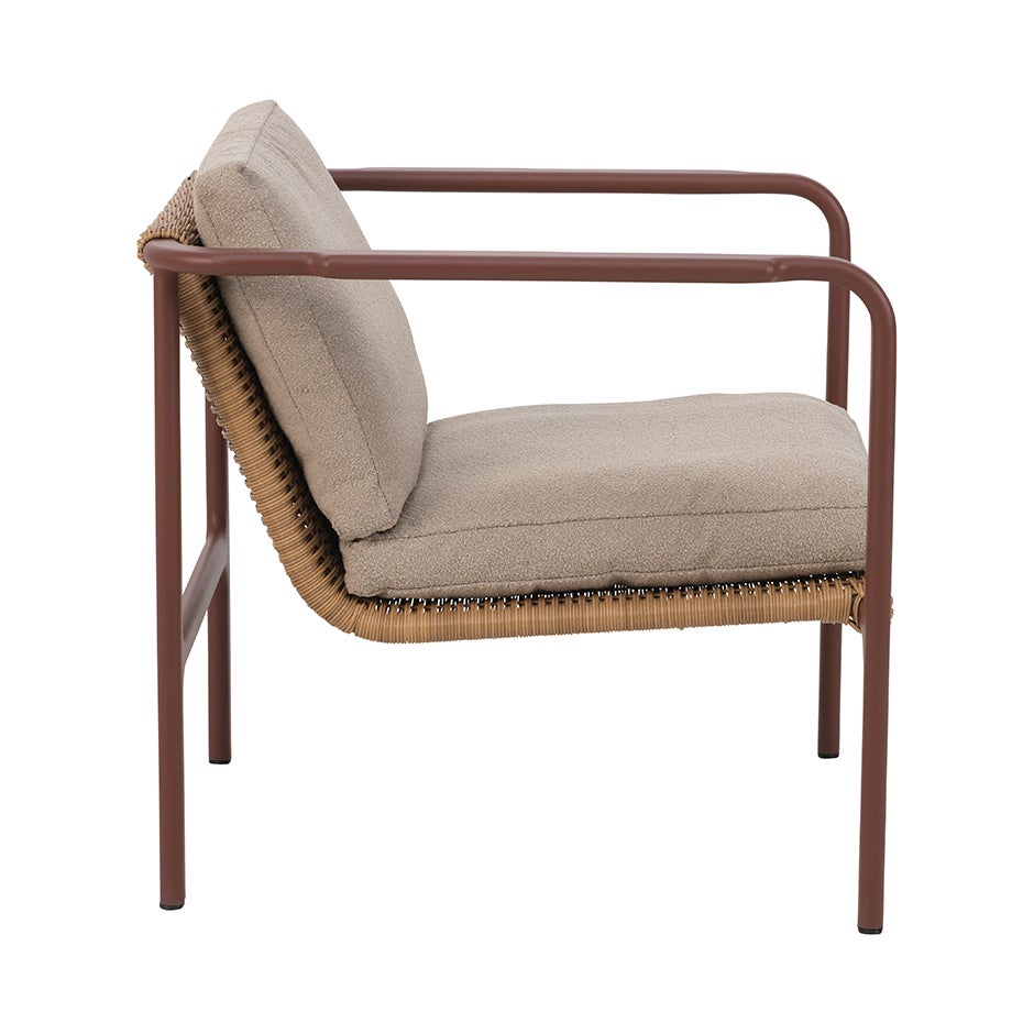Fåtölj Motty, totalmått B810 x D760 x H750 mm, sitthöjd 430 mm, stativ aluminium, färg Zin Red, konstrotting, dyna Teddy Beige