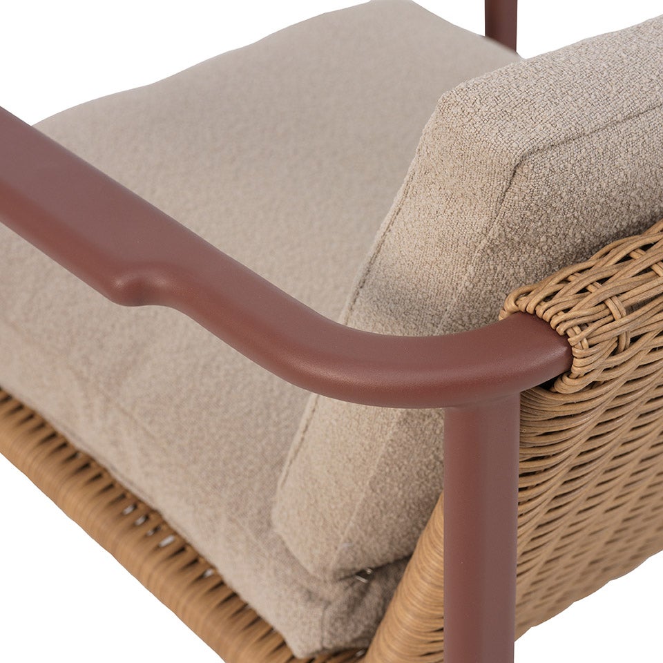 Med mjuka former och en naturligt inspirerad rottinglook ger Motty både komfort och stil. Den pulverlackerade stommen har mjuka övergångar vid fogar och armstöd, vilket förstärker det eleganta uttrycket. Härliga dynor i mjukt Teddy-tyg fulländar känslan och gör Motty lika inbjudande som bekväm.