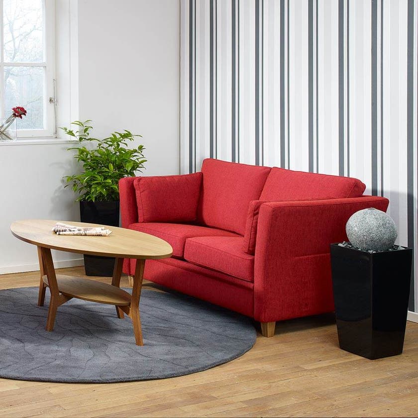 Stilren 2-sitssoffa Dante i hög kvalitet och med mycket god sittkomfort. Klädd i slitstarkt tyg, välj mellan flera olika färger. Ben i oljad ek.
