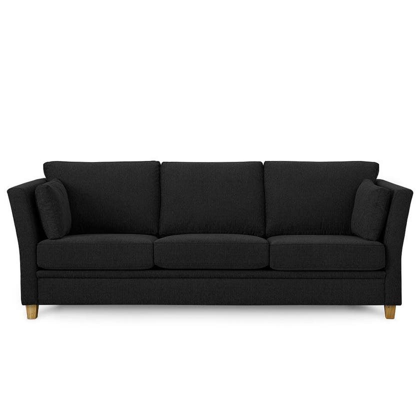 Stilren 3-sitssoffa Dante i hög kvalitet och med mycket god sittkomfort. Klädd i slitstarkt tyg, välj mellan flera olika färger. Ben i oljad ek. Vi vill med eftertryck betona Dantes robusta kvalite.