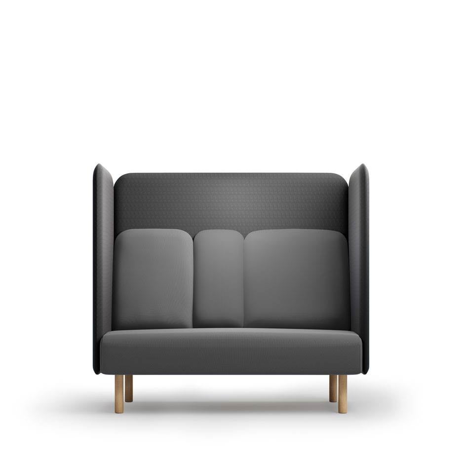 Soffbänken kan kompletteras med ryggpanel och det finns även en väggpanel som fungerar som ljudabsorbent.