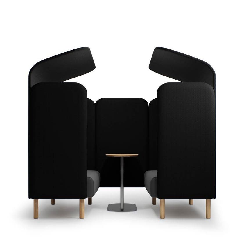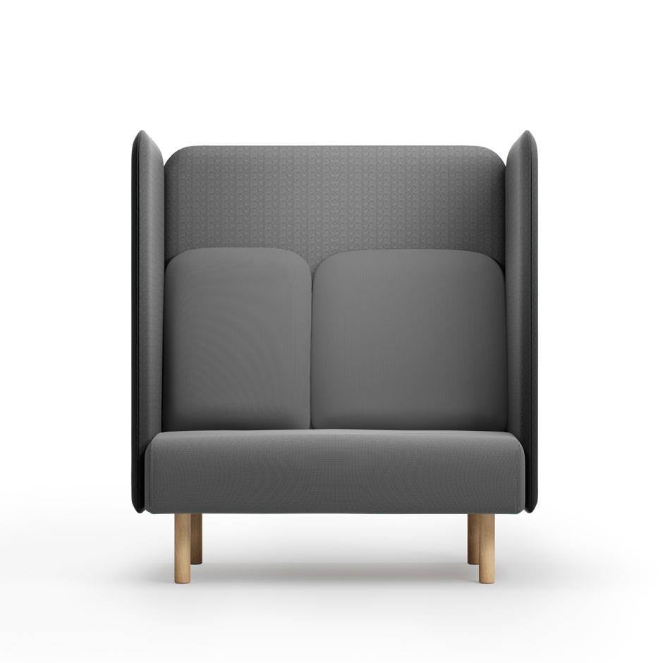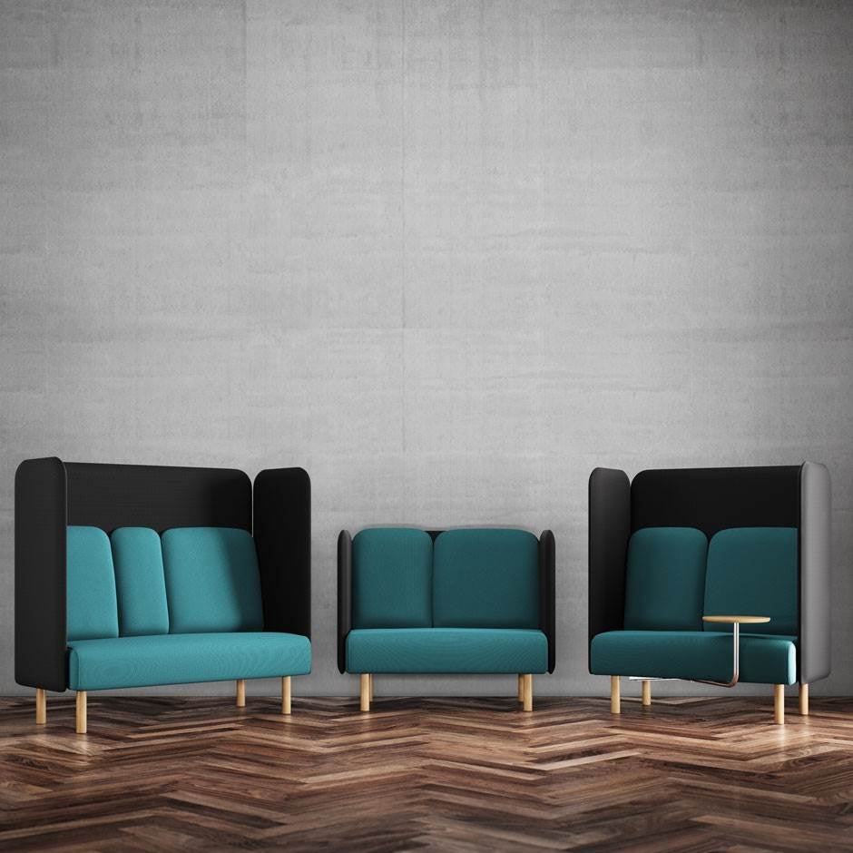 Soffbänken kan kompletteras med ryggpanel och det finns även en väggpanel som fungerar som ljudabsorbent.