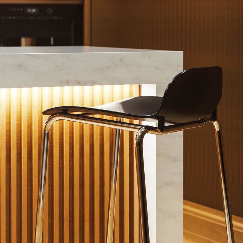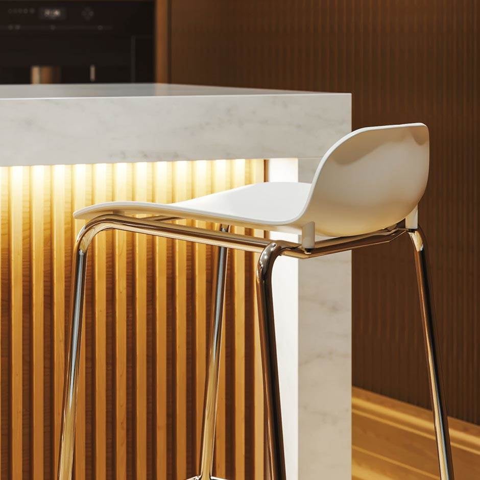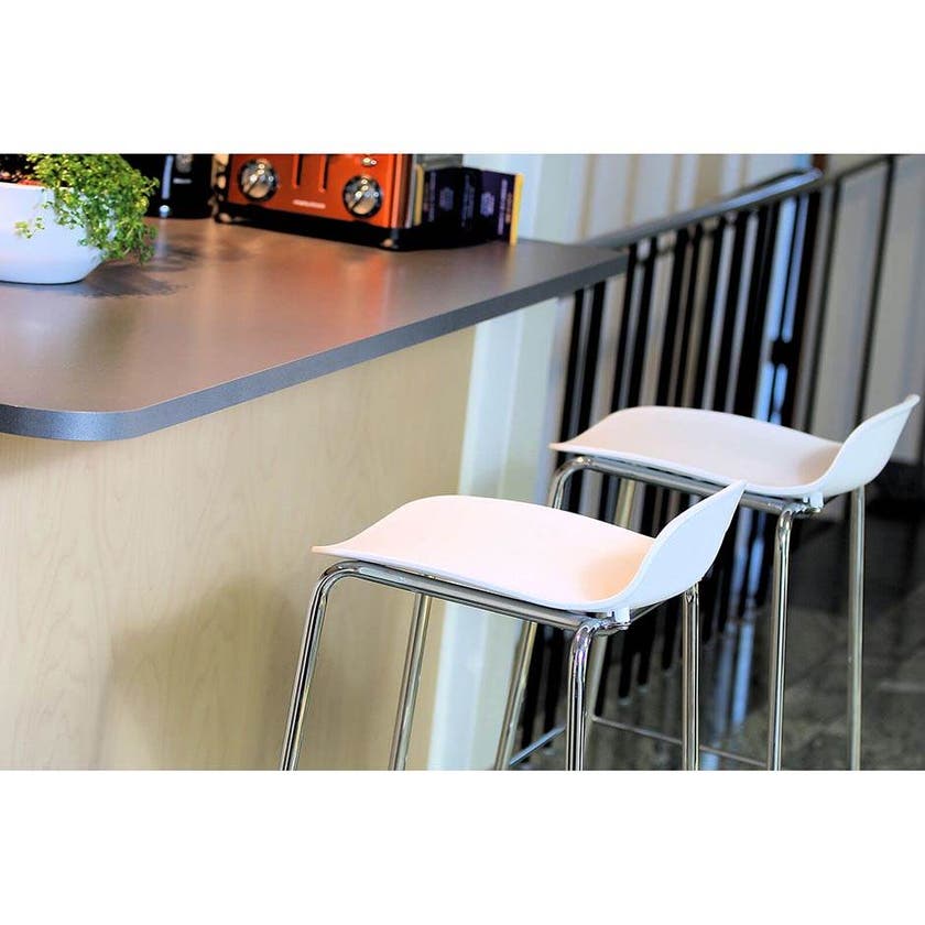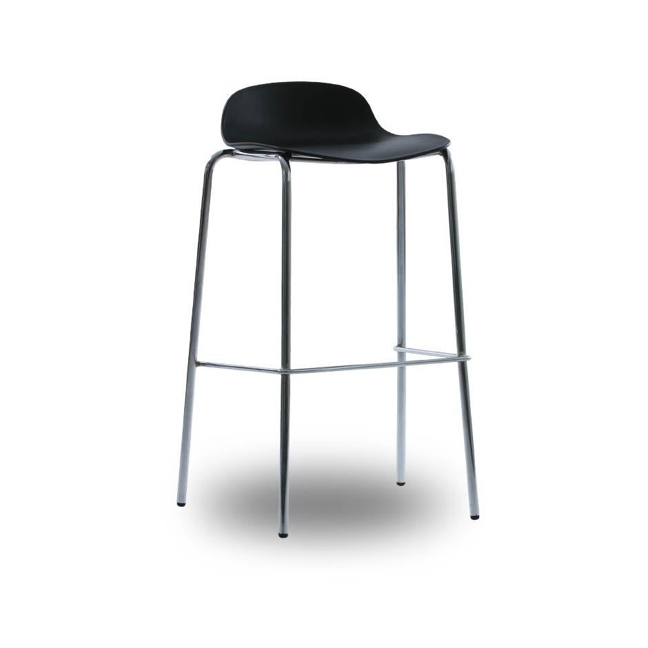 Manacor är en stapelbar barstol med kromad ställning och sits i svart eller vit PP (Polypropen plast). Sitthöjd 750 mm.