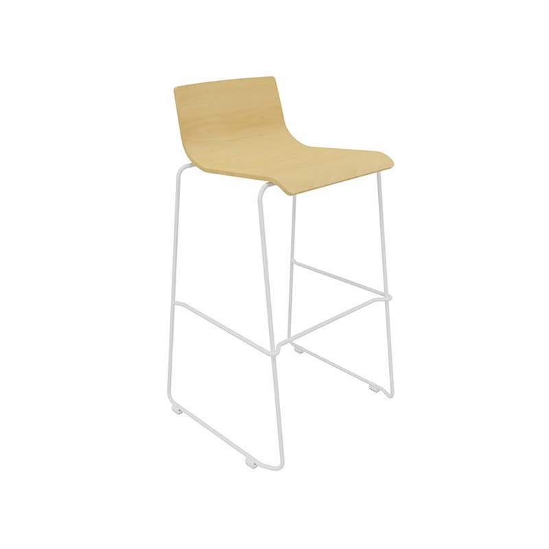 Barstol Moon på medstativ och låg rygg, Sittskal Bok Fanér, sitthöjd 730 mm