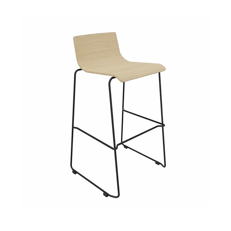Barstol Moon på medstativ och låg rygg, Sittskal Ek Fanér, sitthöjd 730 mm