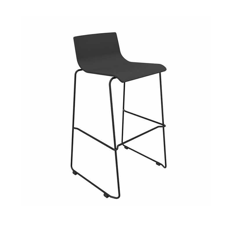 Barstol Moon på medstativ och låg rygg, Sittskal Svartbetsad Bok Fanér, sitthöjd 730 mm