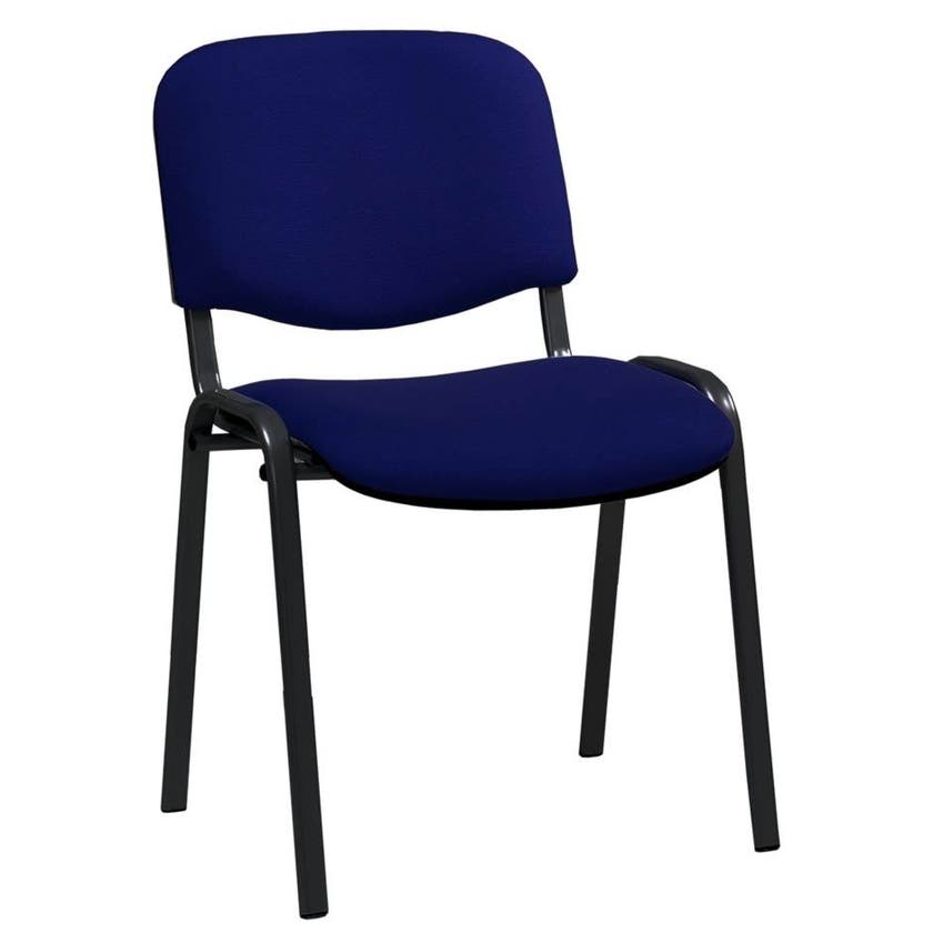 Iso är en klassisk, staplingsbar konferensstol med metallstativ och stoppad sits och rygg. Denna modell är klädd med flamsäkert tyg Lucia.