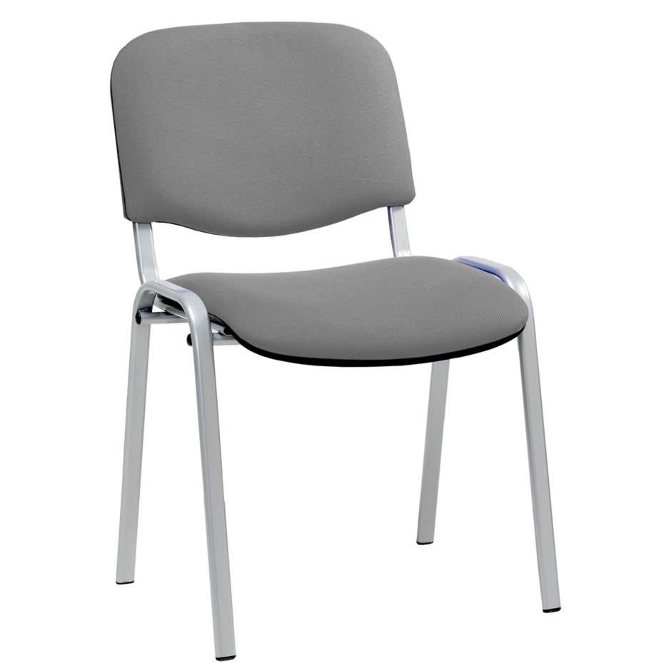 Iso är en klassisk, staplingsbar konferensstol med metallstativ och stoppad sits och rygg. Denna modell är klädd med flamsäkert tyg Lucia.
